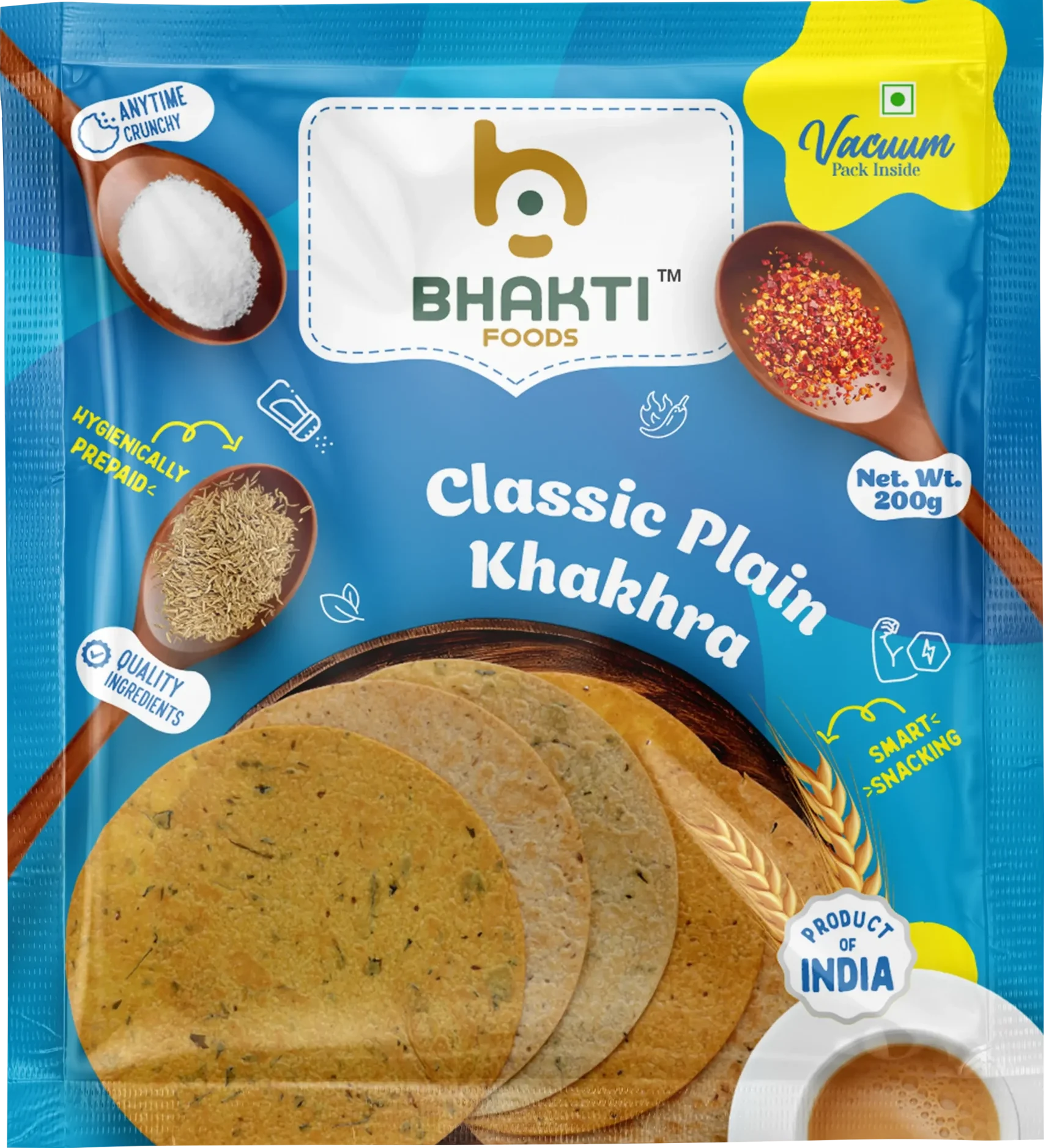 Enjoy the purity of flavor with Plain – Classic Plain from Bhakti Foods, specially crafted for fasting days and light snacking. Made with premium Plain ingredients like rajgira (amaranth), sabudana (sago), and rock salt, this khakhra is a delightful blend of crispiness, taste, and tradition.
